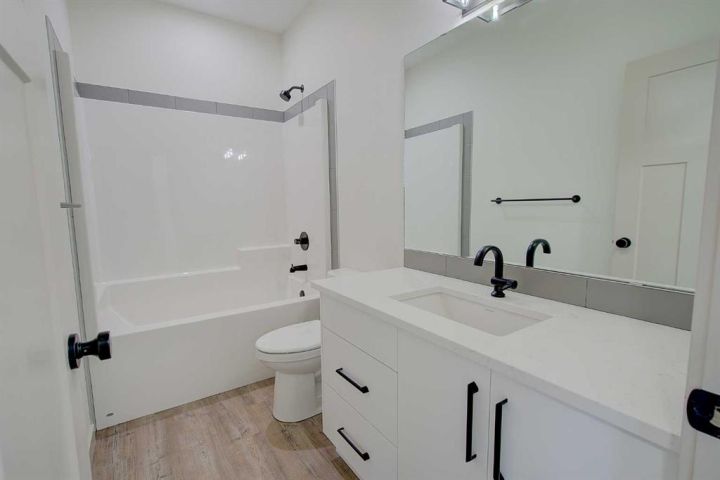 IMMEDIATE POSSESSION AVAILABLE! Brand new FULLY Developed 3 bedroom 3 bathroom modified bi-level with TRIPLE attached garage. This fabulous home is located in Timberlands North, close to shopping, schools, Canyon Ski Hill, Riverbend golf course with easy access to the highway and north/south Red Deer. The main floor has a beautiful open kitchen/dining room living room design. The kitchen is finished with quartz counter tops, a large Island and black stainless steel appliances. The living room has plenty of natural light and a large linear electric fireplace-flooring is luxury vinyl plank. There is also a 4 piece bathroom on the main floor and a good sized spare bedroom. The master bedroom is located up a few stairs with large walk in closet with custom shelving (with barn door) and a 4 piece ensuite with his/hers sinks and stand up shower. The lower level also has an abundance of natural light and has a spacious family room, finished laundry room with black stainless steel washer dryer, 4 piece bathroom and another bedroom-flooring is carpet. The lower level has roughed in under slab heat, roughed in central vac. Outside you will find a finished rear deck with aluminum railing, a gas line for barbecue, a fully sodded front yard and rear fence. This home comes with a 10 year new home warranty.