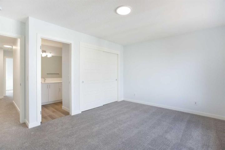 Welcome to this beautifully appointed townhome in the heart of Rangeview, offering over 1,400 sq. ft. of stylish, functional living space with a light and airy design palette throughout. With the attached garage, a modern open-concept layout, and unmatched access to natural spaces and urban conveniences, this home delivers both comfort and connection. Facing a lush courtyard garden and green space, this residence offers a peaceful outlook and a strong sense of community from the moment you arrive. Inside, the design centers around light finishes, clean lines, and a layout made for modern life. Soaring 9' ceilings on the main floor and 8' ceilings on the upper level create a spacious, open feel, while large windows allow natural light to pour in across every level. The main floor features contemporary luxury vinyl plank flooring that flows through the kitchen, dining, living areas, bathrooms, and laundry. The open-concept kitchen is thoughtfully designed with slab-profile cabinets and drawers, crisp white quartz countertops, and an eating bar that’s perfect for casual meals or entertaining. A designated dining area offers space for hosting, while the adjacent upper balcony off the main living room provides a peaceful spot to enjoy morning coffee or evening sunsets. Upstairs, you'll find cozy yet elevated comfort, with plush carpet and an 8lb underlay in the bedrooms, upper hallway, and stairs. The layout includes spacious bedrooms, a full main bathroom, and a tranquil primary retreat—all finished with a consistent attention to quality and detail. Bathrooms feature quartz counters, chrome faucets, high-efficiency toilets, and a fresh tile backsplash for a clean, modern aesthetic. This home also offers the convenience of two garage spaces, whether for vehicles, storage, or both, making daily life even easier. A full-sized washer/dryer located on the upper floor, in its own laundry area, adds an extra layer of practicality and ease. Living in Rangeview means embracing a lifestyle built around nature, food, and connection. Enjoy access to a community greenhouse and garden, scenic pathways, playgrounds, and shared courtyard green spaces—perfect for walking the dog, meeting neighbors, or simply taking in the open air. Commuting and daily errands are effortless with quick access to both Deerfoot and Stoney Trail, nearby shopping in Mahogany and Seton, and the South Health Campus hospital just minutes away. Whether you're a first-time buyer, downsizing, or seeking a vibrant, walkable community to call home, this property delivers exceptional value with the perfect blend of warmth, style, and convenience. Welcome to your fresh start in Rangeview—where community roots run deep and home feels just right.