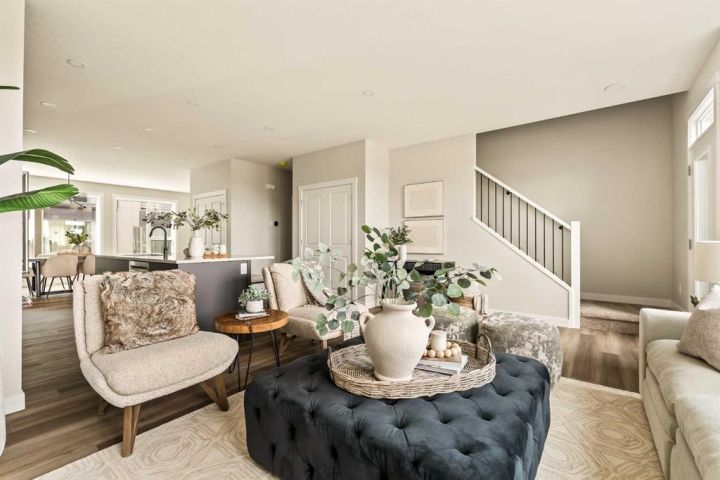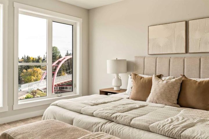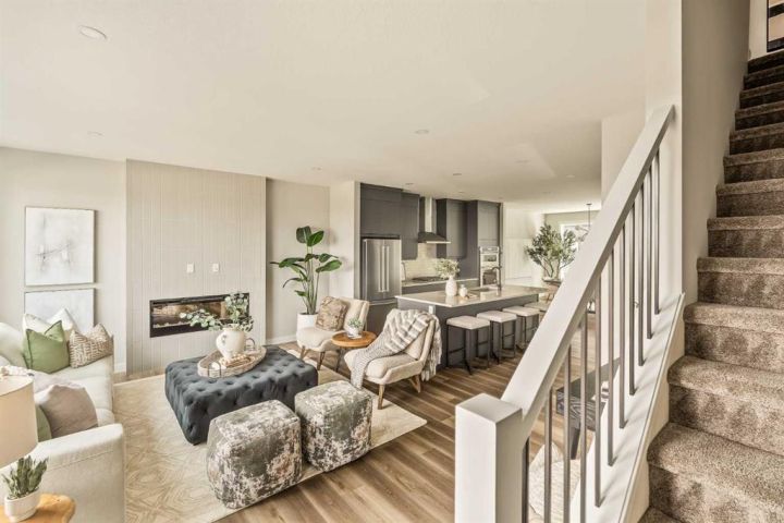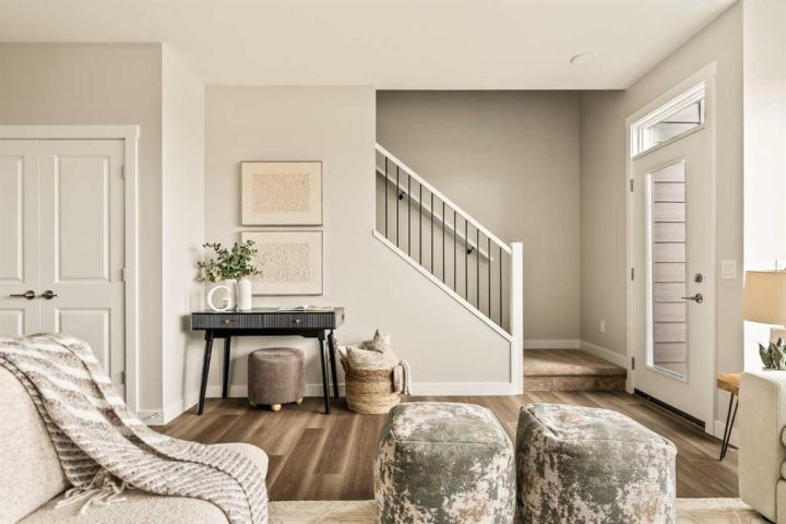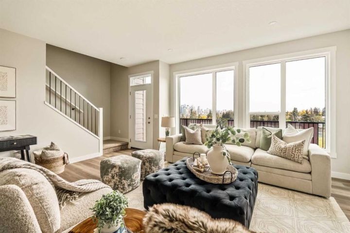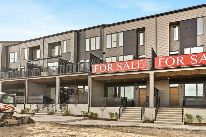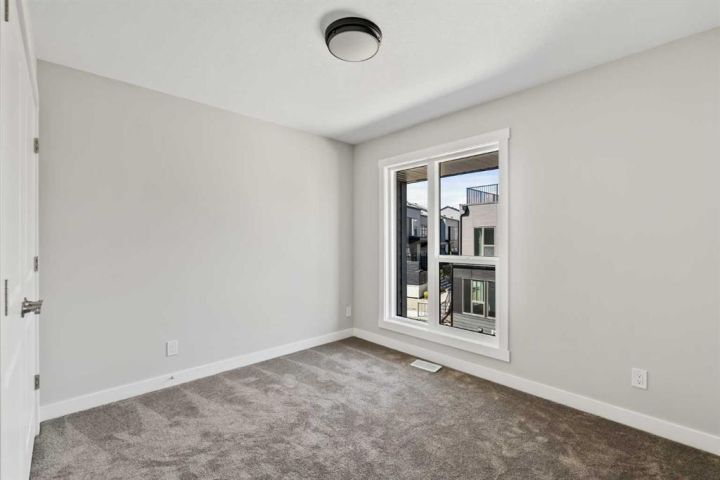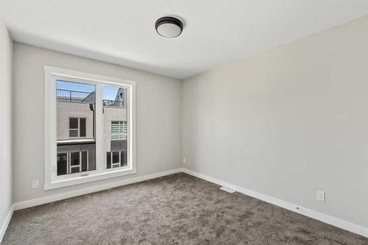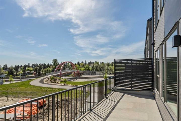 **Open House - Saturday, October 11th - 1:00 PM - 3:00 PM** Current Promotion: FREE A/C + 2 years of FREE condo fees - a limited-time incentive for you to enjoy maintenance-free living from day one at no cost to you for 2 years! This brand-new home features 3 bedrooms, 2.5 bathrooms, an office/flex space, a double attached garage, two outdoor living areas, and unobstructed city views from upper floors! The ‘Rouge’ walkout is an urban townhome at Crown Park, offering over 2,100 square feet of interior living space and nearly 400 square feet of outdoor space between the expansive balcony off the main living area and lower level covered patio space. The open-concept main living area is thoughtfully designed with a spacious layout, showcasing 9' ceilings and oversized windows that flood the home with natural light from morning to night. At the center of this home is the gourmet kitchen, perfectly positioned between the dining area and the main living room, making it an ideal space for entertaining. It features a gas cooktop, built-in microwave and oven, range hood, a large quartz island with seating, and elegant design details throughout. A balcony spanning the width of the property has direct access off of the main living area, making it the ideal space to entertain and host guests while soaking up sun all year long. A 2pc bathroom completes the main level. Upstairs, the expansive primary bedroom includes a large walk-in closet and a full ensuite with dual sinks and a walk-in shower with tile surround. Two additional well-sized bedrooms, a laundry area, and a full bathroom complete the second level. The lower walkout level features 10' ceilings and a welcoming foyer with storage and an office/flex room, ideal for a home office, media room, or gym. The lower level also has direct access to the second outdoor living area - a generous walkout patio that stretches across the home at ground level, providing the perfect covered outdoor living space. The private double attached garage ensures your vehicles and valuables stay safe and warm throughout the year. Additional features include natural gas line for BBQ, triple pane windows and a comprehensive 3-year extended workmanship warranty program. This stunning property provides all the conveniences of downtown living without the congestion. Located just minutes from downtown Calgary, Crown Park offers a unique opportunity to own a beautiful, brand-new home in a picturesque setting. Alberta New Home Warranty + Builder Warranty allow you to purchase with peace of mind at one of Calgary's most coveted developments.
