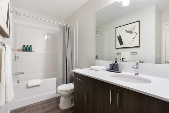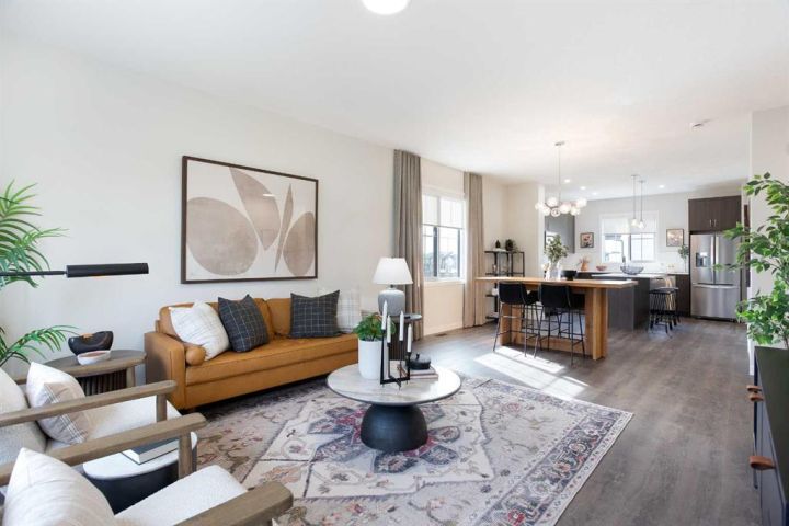 Step into this beautifully crafted 3-bedroom, 2.5-bathroom townhome, where contemporary design meets thoughtful functionality. With a spacious floor plan and soaring 9' ceilings, this residence offers a light-filled, open atmosphere that enhances every room. The attached double-car garage provides generous space for both your vehicles and storage needs, making daily living a breeze. Inside, the home features a variety of modern upgrades. The kitchen is a true highlight, showcasing elegant quartz countertops, a full suite of drawers for organized storage, high-end stainless steel appliances, and soft-close cabinetry for that extra touch of refinement. On the main level, you'll find durable vinyl plank flooring, while plush carpeting and 8lb underlay in the bedrooms create a cozy, inviting retreat at the end of the day. The private balcony is an ideal space for unwinding or entertaining guests, adding another layer of versatility to this home. Beyond the interior, the property offers a vibrant community atmosphere, perfect for an active lifestyle. Enjoy access to a serene greenhouse and beautifully maintained garden spaces—perfect for nature lovers or anyone who enjoys a little gardening. This townhome’s location is equally impressive, with quick access to Seton and Mahogany, offering nearby shopping, dining, and recreational options. The exterior of the home is designed for durability and low maintenance, featuring a stylish mix of vinyl siding, fibre cement panels, and asphalt shingles. Thoughtful lighting selections throughout the home add to its modern appeal, blending style with practicality. With the added benefit of AC rough-ins already in place, this townhome is ready to offer comfort and convenience no matter the season. A perfect balance of luxury, functionality, and community, this home truly exceeds expectations.