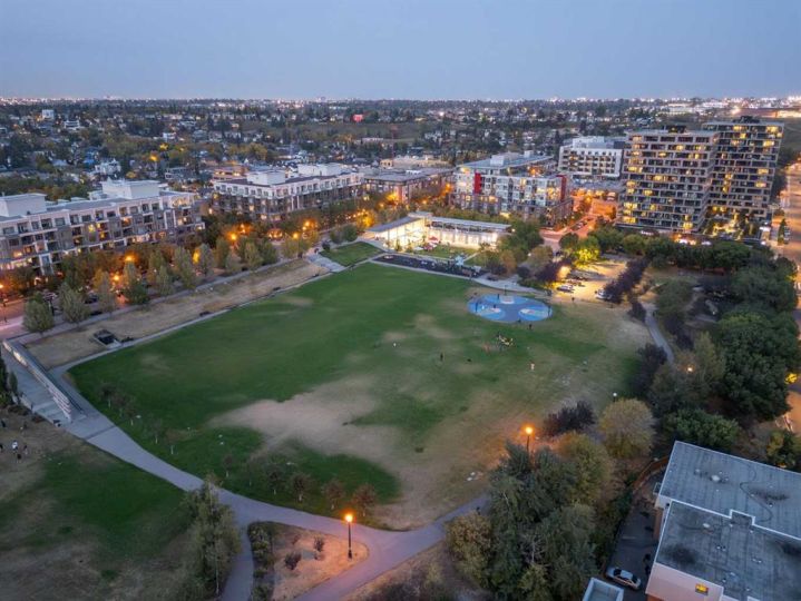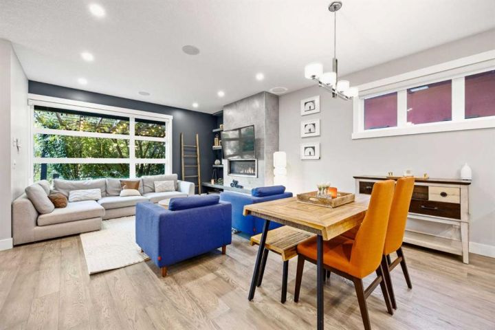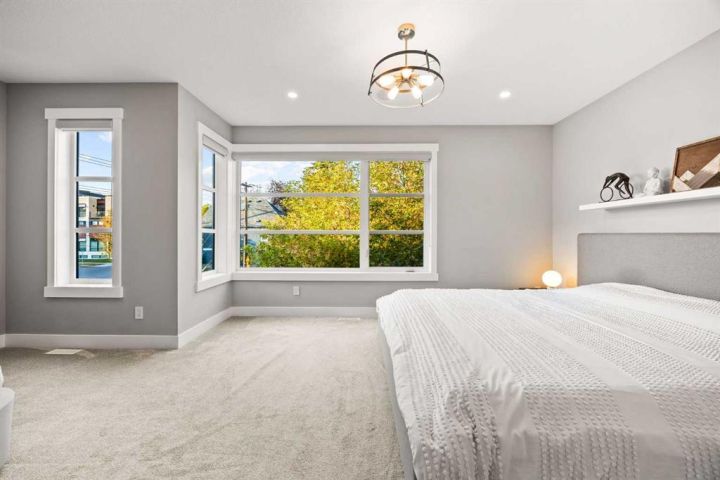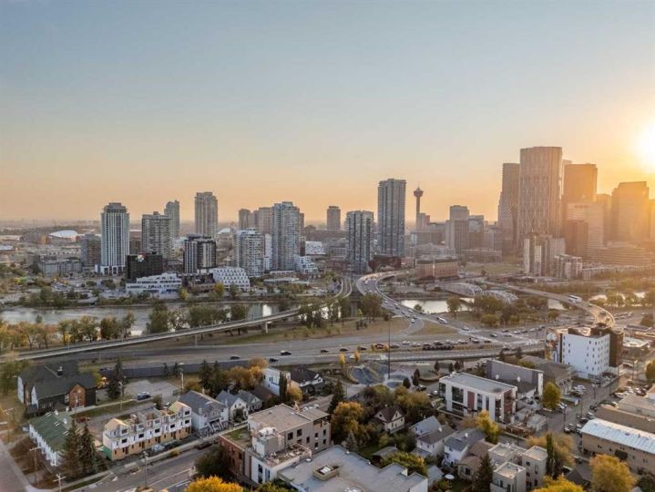 A truly rare opportunity in the heart of Bridgeland. Less than a 5 min walk from the Bow River Pathway, Downtown, and all the amenities the beautiful community of Bridgeland has to offer. Walk or bike to work with the bike lane directly in front of your home. This is not your typical semi-detached property — situated on a 36-foot-wide lot, it offers a noticeably more open and spacious feel throughout. Perfectly located across from Flyover Park, this home features over 2,400 sq. ft. of developed living space designed with comfort and style in mind. Upon entering, you’ll immediately notice the 9 ft ceilings and engineered hardwood flooring that flow seamlessly across the main floor. The bright, wide living room is anchored by a tile-surround gas fireplace with custom built-in shelving, extending naturally into the dining area and open-concept gourmet kitchen. The kitchen showcases beautiful quartz countertops, modern white cabinetry, a subway tile backsplash, and stainless steel appliances. A tucked-away pantry and 2-piece bathroom complete the main level. The open-riser staircase serves as an architectural focal point connecting all levels. On the second floor, you’ll find the serene primary retreat, complete with a walk-in closet and 5-piece spa-inspired ensuite. A quiet reading nook within the primary bedroom captures the morning sun through large, bright windows. This level also includes a spacious laundry room for added convenience. Heading up to the third floor, natural light floods the hallway with beautiful downtown views. The open bonus room offers flexible space for a home office, studio, or entertainment area, and opens onto the rooftop deck equipped with a built-in gas line and stunning city skyline views. This level is complete with an additional bedroom and a 4-piece bathroom overlooking downtown. The fully developed basement includes a spacious media room, perfect for movie nights, a fully equipped wet bar, bedroom, and 4-piece bathroom — ideal for guests or extended family. Out front, the private patio surrounded by mature trees provides a peaceful retreat in the middle of the city — perfect for BBQs or relaxing summer nights. Enjoy the convenience of your private detached garage with generous built-in storage — perfect for bikes, tools, and all your outdoor essentials. With a Walk Score of 94 and a Bike Score of 97, this home offers unbeatable convenience. Steps from Blush Lane Organic Market, Luke’s Drug Mart, UNA Pizza, Village Ice Cream, numerous coffee shops, and a variety of beloved local spots. Don’t miss this opportunity — homes like this with this location rarely come to market in Bridgeland.