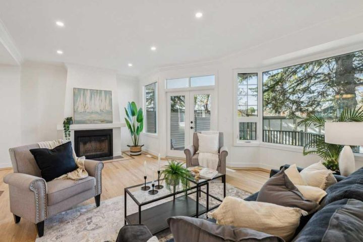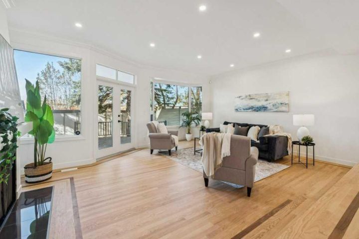 **OPEN HOUSE - Sat. Oct. 4th from 11am-2pm** Or check out our 24-7 Virtual Open House! Welcome to this stunning renovated townhome in the highly sought-after community of Varsity! Offering over 2,000 sq.ft. of stylish developed living space, this home perfectly combines modern elegance, functionality, and location. The main level features gorgeous hardwood floors throughout, oversized windows, bright modern tones, and professional design elements that create a warm, contemporary atmosphere. The spacious living room showcases a custom fireplace and overlooks the private yard with mature landscaping and a large deck—an ideal retreat for outdoor entertaining or relaxing in your own oasis. The chef-inspired kitchen is a showstopper with custom cabinetry, quartz countertops, stainless steel appliances, recessed lighting, and a charming breakfast nook, while the adjoining dining area boasts a custom pantry and display case for additional storage and style. A convenient two-piece bath and rear yard access complete this level. Ascend the open riser staircase to discover a versatile bonus room, two spacious bedrooms, and two full bathrooms. The primary suite is an inviting retreat with a walk-in closet and a beautifully updated ensuite featuring dual vanities and a walk-in shower. Additional highlights include an oversized attached single-tandem garage, ground floor laundry, and generous storage throughout. Residents also enjoy beautifully landscaped grounds, tranquil ponds, and lush greenspace within the complex, offering a peaceful setting just outside your door. All of this comes with an unbeatable location steps from Market Mall, parks, top-rated schools, and minutes to the University District, U of C, Foothills Hospital, Alberta Children’s Hospital, and major routes. This one-of-a-kind townhome offers a rare opportunity to own a beautifully renovated property in one of Calgary’s most desirable neighborhoods—don’t miss it!