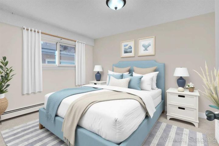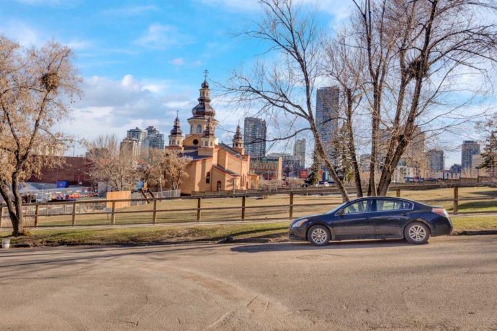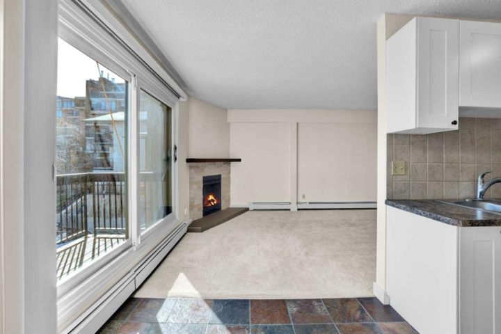 Gorgeous downtown views await from this top-floor condo in very good condition! Bathed in natural light from its south-facing exposure, this home features a sleek white kitchen with stainless steel appliances, slate floors, and large patio doors leading to a sunny 12' balcony. The spacious living room is a showstopper, offering panoramic city views and a charming corner wood-burning fireplace—perfect for cozy evenings. With two generous bedrooms, in-suite laundry, and thoughtful updates throughout, this condo blends comfort and convenience. The location is unbeatable: just a quick stroll to downtown, the trendy Bridgeland cafés and restaurants, and the Bow River pathway system. This well-managed building offers peace of mind with recent upgrades including newer windows, balconies, patio doors, and a new roof (April 2024). Don’t miss this opportunity to enjoy vibrant city living with style, views, and value!