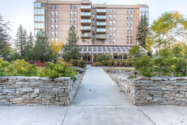 Penthouse condominium home in the lovely Varsity Towers. This top floor unit provides a beautiful living space and expansive distant views to the south and west that include the mountains, an overlook of Varsity, and the river valley. Excellent floor plan that provides an open plan and comfortable divided spaces. A Large kitchen with granite counters and quality built-in appliances connects to a very lovely sunroom with views to the south and west. The generous living room is warmed by a gas fireplace. Apart from the living spaces, a hallway leads to 2 large bedrooms and an office (easy conversion to 3rd bedroom if desired). The primary bedroom has a gas fireplace, a balcony to the outside deck space, a walk-in closet and a large 5pc ensuite bath. Separate laundry room in hallway next to the 4pc main bathroom. The home is excellent! Now amenities: Roof top patio (stairway directly outside the unit door) for enjoying the view, sunning, or a bbq., a beautiful indoor pool, exceptional private garden spaces, a well equipped gym, theatre/games room, library/study room, warm lobby spaces, car wash. In addition, this home comes with 2 indoor parking spaces and its own storage room. This home and the property together offers excellent value by ft$ while providing a great lifestyle.