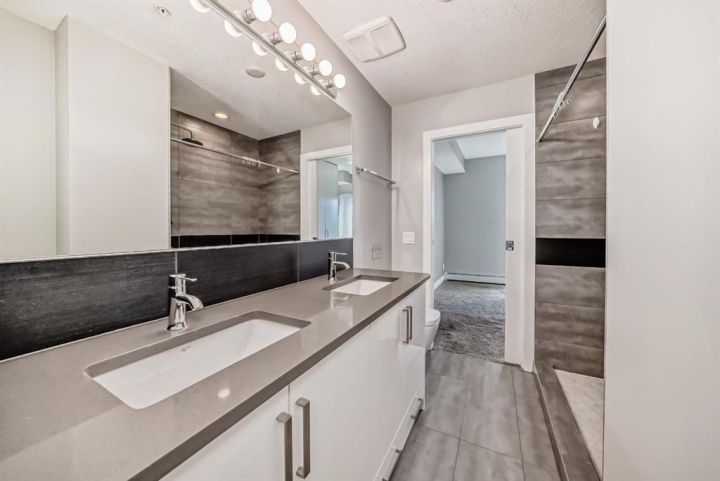 Welcome to 206 – 1521 26 Ave SW, a bright and thoughtfully designed 2-bedroom, 2-bathroom condo perfect for FIRST-TIME BUYERS or SAVVY INVESTORS. Situated on the second floor, this 612 SF unit offers a seamless blend of style, comfort, and convenience. Step into an open-concept living space where the kitchen, dining, and living areas flow effortlessly. The kitchen boasts STAINLESS STEEL appliances, GRANITE countertops, and plenty of room for culinary creativity. The living room features a wall-mounted cabinet for media or storage, and the private SOUTH-FACING BALCONY invites you to enjoy unobstructed views, a natural gas line for year-round grilling, and warm sunshine. The primary bedroom offers a large closet, a portable AC system, and a 4-piece ensuite with a double vanity, creating a serene retreat. The second bedroom also enjoys easy access to the shared ensuite, making it perfect for family, guests, or a home office. In-suite laundry, an additional three-piece bathroom, and a storage locker add practicality to this modern home. ONE SECURE UNDERGROUND TITLED PARKING STALL completes the unit. Residents enjoy visitor parking, a ROOFTOP PATIO with grills and panoramic views, and the peace of mind knowing heat, water, and amenities are included in the condo fees. Located in the heart of South Calgary, you’re just steps from 14 Street transit, local shops, cafés, and restaurants, as well as South Calgary Park with its community garden, library, outdoor pool, and vibrant Marda Loop markets. Whether you’re starting your homeownership journey or seeking a rental-ready investment, this condo offers the perfect combination of location, lifestyle, and modern comfort.