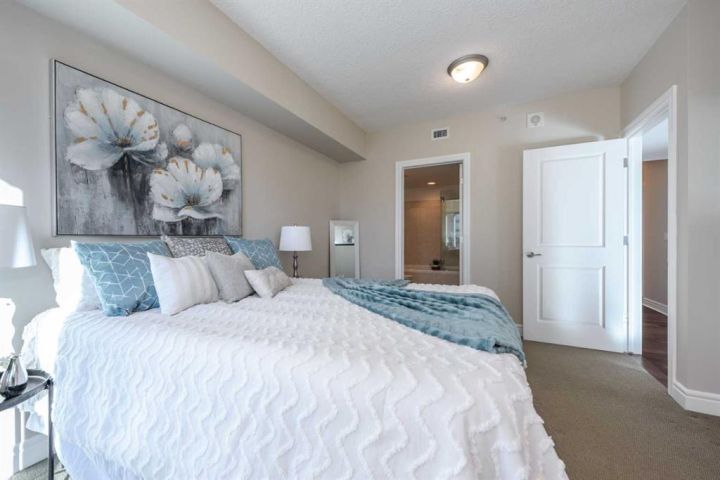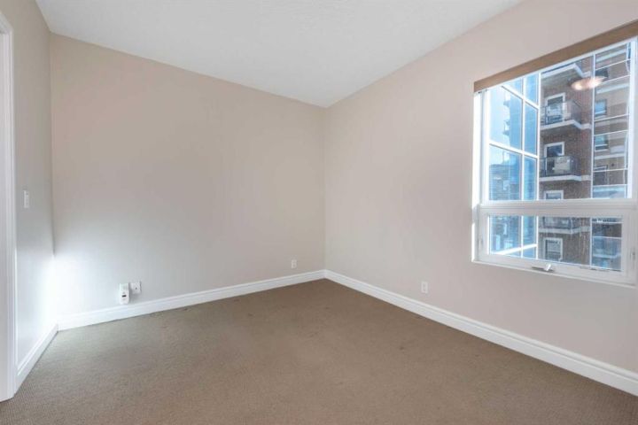 Sophisticated urban condo living is yours in this freshly painted, bright & stylish, very desirable, 2 bdrm + den/2 full bath, south east CORNER, CITY VIEW suite, wrapped in windows, at Five West – one of Calgary’s PREMIER executive condo buildings. You’ll be impressed with the hardwood floors throughout the main living areas and the efficient floor plan as soon as you walk in – spacious front entry with den space, great sized kitchen with luxurious granite counters, sleek stainless steel appliances and lots of cabinets, dining area with glass door to the south facing balcony with gas BBQ line, cozy corner gas fireplace in the living room all surrounded in windows! Primary bedroom offers lots of space to easily accommodate a king-sized bedroom, walk in closet and 4 pc main ensuite. Second bedroom, set apart from the primary, offers a cheater ensuite bath - so convenient for a room mate or guests. The abundance of natural light throughout the suite is truly memorable! There is of course central air conditioning, an in-suite laundry room with extra storage area, extra storage locker and one titled parking stall is included. Five West building amenities incl. concierge service (so nice!), owners lounge, car wash bay & indoor visitor parking for when friends stop by for a drink or dinner. The location is superb, an easy walk to your DT work, restaurants & coffee shops, 2 blocks from the LRT free downtown zone. The river pathway is a block away for a walk, jog or bike ride at the end of the day or to enjoy your weekend, and just across the bridge is the vibrancy of all Kensington has to offer. This suite is move in ready - Call to view today!