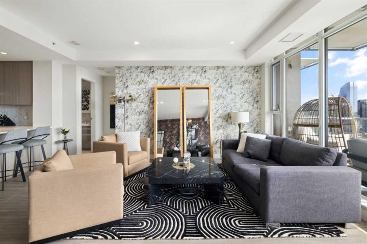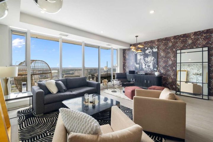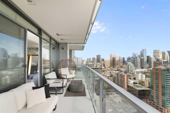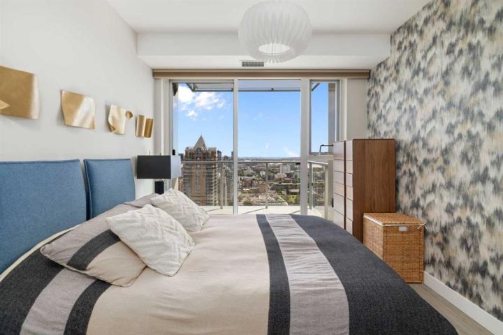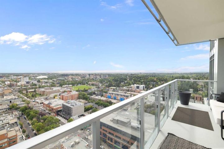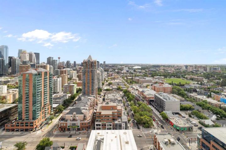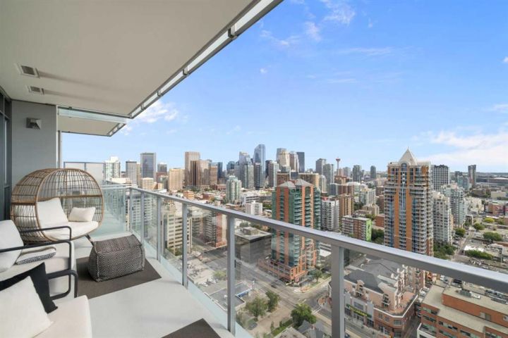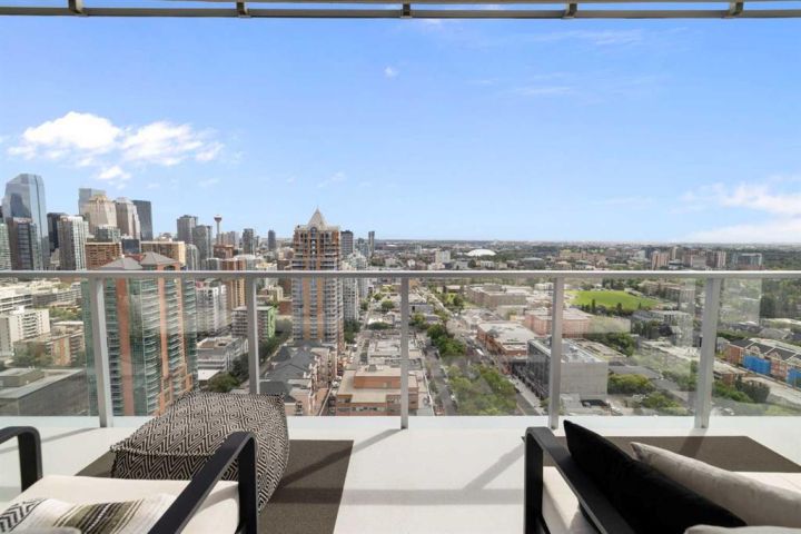 --- CHECK OUT VIDEO TOUR --- Live Royal! Unique and unparalleled, this Sky-Suite presents style and finishings that dreams are made of. 24-hour security/concierge and three high-speed elevators provide safe, seamless access day and night. As you enter you are greeted by a bright, open-concept design with floor-to-ceiling windows that showcase stunning city views and the warmth of the morning sun. The gourmet kitchen is a true highlight, featuring Bosch appliances, quartz countertops, full-height cabinets, under sink Reverse Osmosis water filter with additional remineralization filter for premium water, and a spacious breakfast bar perfect for entertaining. The adjacent dining and living areas are flooded with natural light and offer direct access to a large balcony, ideal for morning coffee or evening gatherings against the breathtaking backdrop. The spacious primary bedroom also boasts fantastic views from a second private patio, creating a serene retreat. Fully custom power blinds allow you to shut down the city for full relaxation. The stylish bathroom includes a deep soaker tub, double vanity, and heated flooring for extra comfort during those cool mornings. Additional features like in-suite laundry, underground parking, and a separate storage locker are included for added convenience. The building offers a wealth of amenities, including a 10,000 sq. ft. "Club Royal" with an elevated garden terrace, BBQs, steam room, sauna, gym, squash court, owner’s lounge, chef's kitchen, and private dining area. With a walk score of just under 90, The Royal building’s location is perfect for anyone looking to enjoy the countless parks, amenities, and transit options to enjoy downtown Calgary’s vibrant and trendy lifestyle. Don’t wait, come be a part of the Royal family!