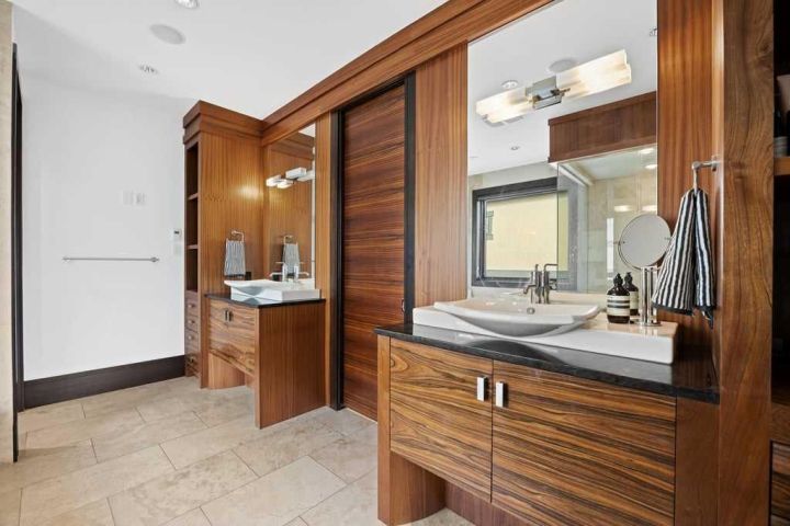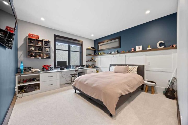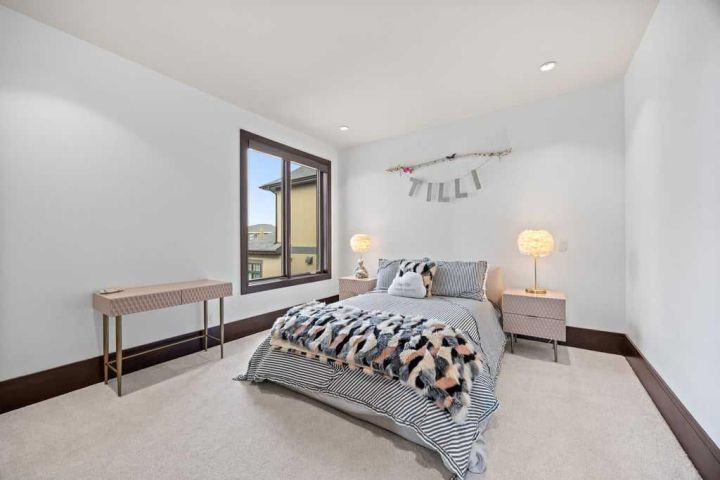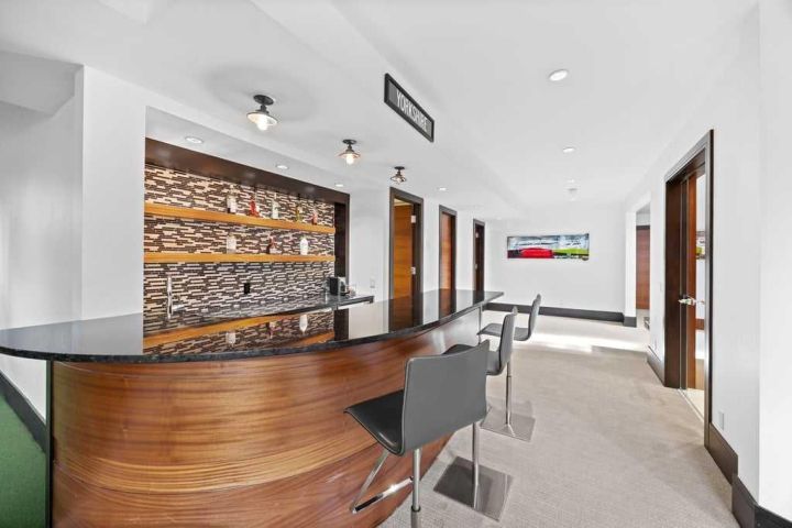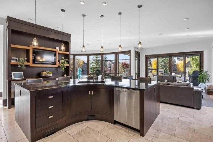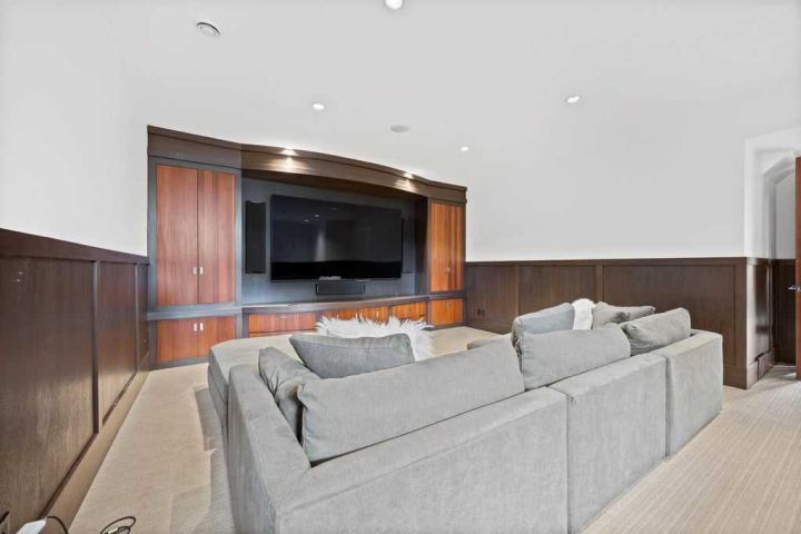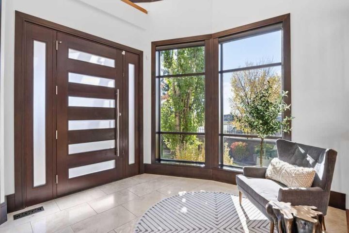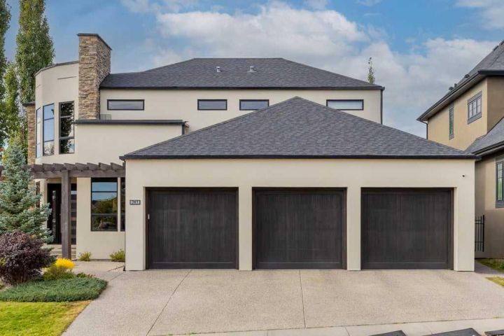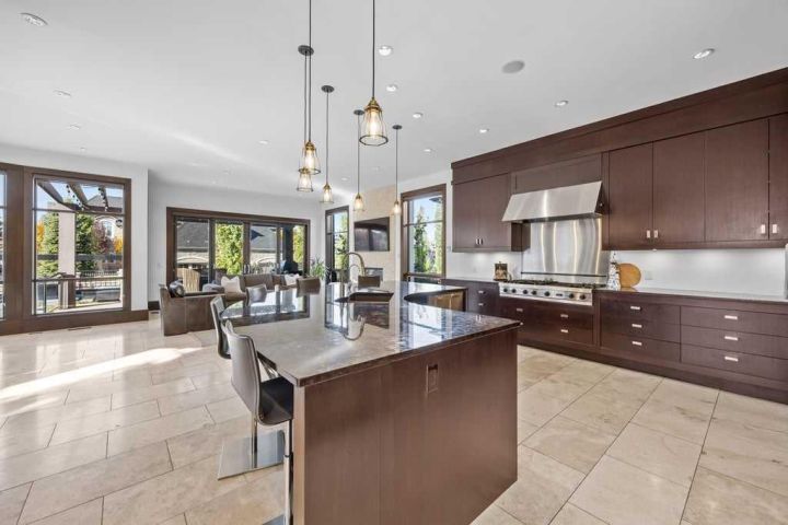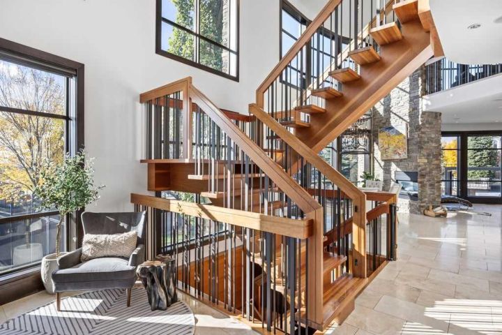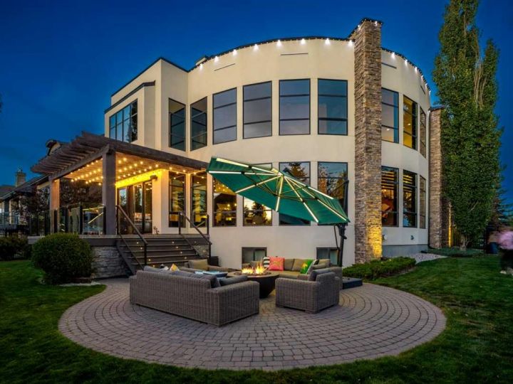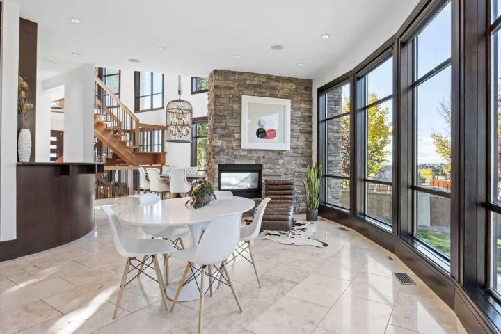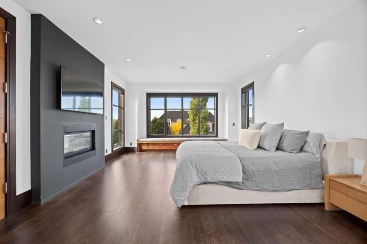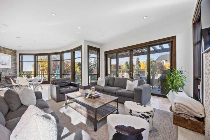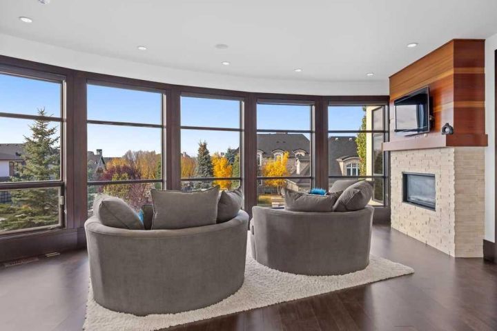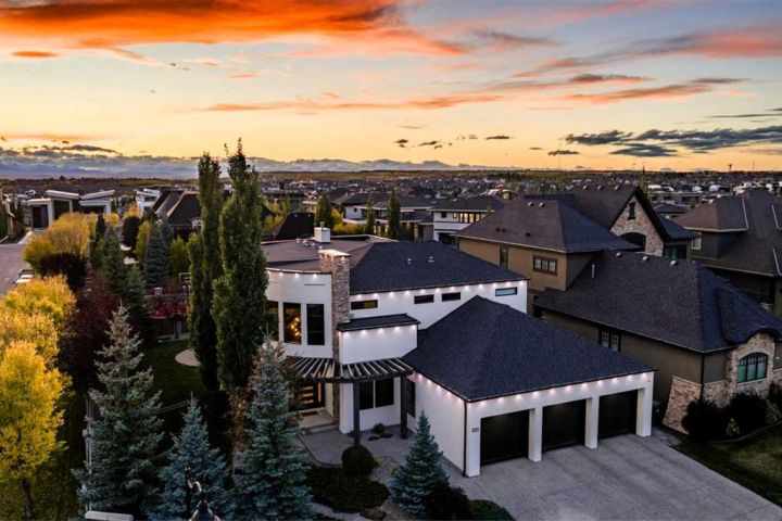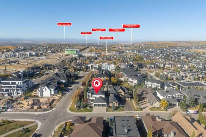 Set in the prestigious community of Aspen Estates, this custom-designed luxury home offers over 6,900 sq. ft. of total living space, blending architectural artistry with everyday comfort. From the moment you step into the dramatic 19-ft foyer—defined by its striking steel-framed glass wall—you’ll sense the sophistication and craftsmanship that define this exceptional residence. Every element has been meticulously curated. Rosewood cabinetry and solid doors, a Jatoba floating staircase, and heated limestone and hardwood floors create a seamless blend of warmth and refinement. Soaring 10-ft ceilings on the main level and 9-ft ceilings on the lower level enhance light and volume, while Montego linear fireplaces bring contemporary ambiance to the living spaces. The chef-inspired kitchen is the true heart of the home, combining form and function with a curved granite island, Sub-Zero and Wolf appliances—including a six-burner gas cooktop, double wall ovens, two dishwashers, and an integrated side-by-side refrigerator. A butler’s pantry and wet bar make entertaining effortless, whether hosting a quiet dinner or a lively gathering. With six bedrooms and five bathrooms, the layout offers exceptional flexibility for family and guests alike. The main floor includes a spacious bedroom with its own ensuite and walk-in closet—ideal for extended family or a private office retreat. Upstairs, each of the additional bedrooms features its own ensuite and walk-in closet, providing privacy and comfort for everyone. The primary suite stands as a serene escape, complete with a two-sided fireplace, 5x5 steam shower, deep thermal tub, and custom pillowed mahogany woodwork—a true statement of luxury. The lower level was designed as the ultimate entertainment and relaxation space, featuring a theatre room, large recreation area, wet bar, temperature-controlled wine cellar, golf simulator, dedicated office, and an additional bedroom—perfect for guests or live-in support. Outside, the property transforms into a private retreat designed for year-round enjoyment. Highlights include multiple patio spaces, a fire-pit, a covered hot tub area, an outdoor putting green, and an elevated deck with clear glass railing and BBQ—a seamless extension of the home’s indoor living spaces. Modern convenience meets timeless design with smart home automation, a five-zone lighting system, and computerized irrigation, ensuring ease, efficiency, and comfort at every turn.