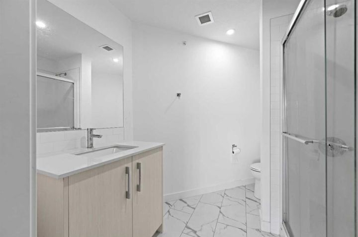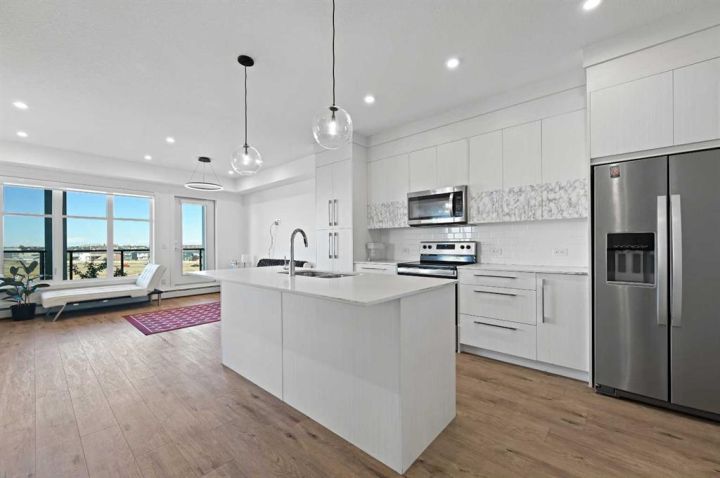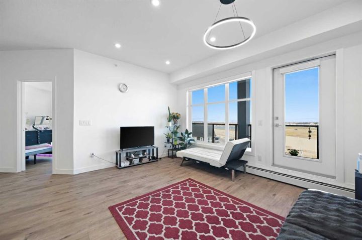 Welcome to #1401, 681 Savanna Boulevard NE – a stylish and modern 2-bedroom, 2-bathroom condo in the vibrant community of Savanna! Perfect for first-time buyers, down-sizers, or investors alike! This bright and open corner unit offers an inviting floor plan designed for comfort and convenience. The contemporary kitchen features sleek cabinetry, quartz countertops, stainless steel appliances, and a spacious island perfect for casual dining or entertaining. The generous living and dining area flows seamlessly onto a private balcony, ideal for morning coffee or evening relaxation. The primary bedroom boasts a walk-through closet and a full ensuite bathroom, while the second bedroom and full bath provide flexibility for family, guests, or a home office. Additional highlights include in-suite laundry, titled parking, and ample storage space. The building offers modern design, secure entry, and is pet-friendly. Located steps from shops, restaurants, schools, and transit, and just minutes from major routes, this home combines lifestyle and convenience in one of Calgary’s most sought-after NE communities.