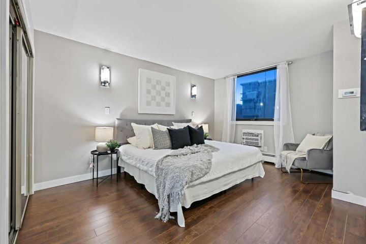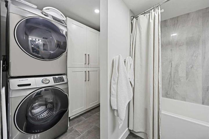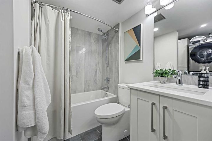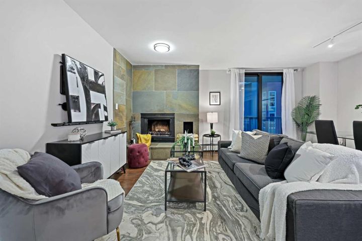 Welcome to Fontaineblue Estates - no, not the one in Vegas, its right here in YYC! This 2 bedroom 2 bathroom open concept condo is exactly what you have been looking for. This corner unit extremely spacious, and has a functional open concept floorplan with over 920 square feet of living space AND a WRAP AROUND BALCONY with beautiful downtown views. The secondary bedroom has a murphy bed which is so convenient, you can use this spacious room however you see fit. The Primary bedroom is huge, easily fits a king bedroom set, and has a beautiful en- suite attached to it with a massive glass walk in shower. The open concept unit has a lovely living room, separate area for a dining room, a beautiful wood burning fireplace, but the true show stopper is the incredible chefs kitchen. From the stone counters to the range hood, to the island with built in storage features throughout, this kitchen is a dream. This unit has massive windows allowing tons of natural light in, and 2 balcony doors to enjoy downtown views from your wrap around balcony. This secure building has undergone all its needed maintenance from the balconies, to the doors and windows - its ready for you! The location here is PRIME, across from a beautiful park, tennis courts and First street food hall, and is a walk away from amazing restaurants and shops.