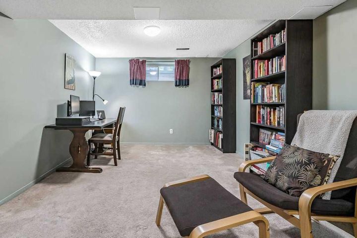 Looking for a quiet home with a yard and a double car garage in a great Calgary neighbourhood? This bungalow-style townhouse in Strathcona Park offers space, comfort, and privacy that is hard to find at this price. You will love the bright, open layout with vaulted ceilings and large windows that fill the home with natural light. The living room features a cozy wood-burning fireplace and access to a front sundeck with distant city views. The dining room flows into the living space and has a convenient pass-through window to the kitchen. The kitchen offers granite counters, modern appliances, plenty of cupboard space, and a sunny breakfast nook with direct access to the private back deck. Surrounded by mature trees, this west backyard feels like a nature retreat and is perfect for relaxing or outdoor dining. The main floor has two spacious bedrooms. The primary bedroom includes double closets and a built-in vanity. The oversized main bathroom connects to the primary bedroom and features a large soaker tub and separate shower. Recent updates include a newly built back deck and a new furnace installed in 2024, along with an updated main bathroom. The fully finished lower level adds even more living space with a large recreation room that could be used as a family room, home gym, or converted into an extra bedroom. A spacious second full bathroom completes the lower level. The attached double garage offers secure parking and extra storage. This well-kept home is in a quiet, family-friendly complex close to schools, transit, walking paths, and shopping. Strathcona Park is known for its strong sense of community and easy access to downtown and the mountains. This is a great opportunity in a top Calgary location. Book your showing today!