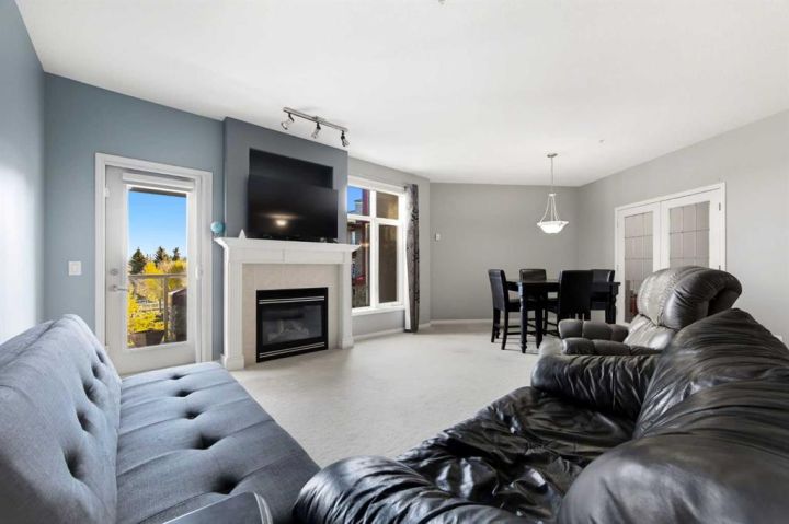 Welcome to Bonavista Estates II, one of Calgary’s premier gated communities located in the heart of Lake Bonavista. This beautifully maintained 2-bedroom, 2-bathroom unit offers 1,122 sq. ft. of comfortable and functional living space overlooking the peaceful courtyard. The open-concept floor plan features a cozy gas fireplace, a bright kitchen with breakfast bar, and direct access to a large balcony—one of the biggest in the complex! The spacious primary suite includes a walk-through closet and a 4-piece ensuite, while the versatile second bedroom with French glass doors makes an ideal den, dining area, or guest room. Enjoy the convenience of in-suite laundry, a massive utility/storage room, and one of the largest titled storage units in the building, located just steps from your heated underground parking stall. Residents of Bonavista Estates II enjoy resort-style amenities including a fitness room, 24-seat theatre room, social lounge with fireplace, games area with pool tables and darts, a library, outdoor BBQ patio, and a car wash bay. Best of all, this unit is located in the same building as the amenities—just an elevator ride away! Live the Lake Bonavista lifestyle with easy access to the C-Train, Avenida Market, Southcentre Mall, restaurants, and all nearby conveniences. Experience maintenance-free living in one of Calgary’s most desirable lake communities—book your showing today!
