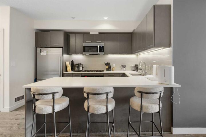 This suite is a rare offering — featuring 3 bedrooms, 2 bathrooms, and a titled indoor parking stall — all nestled in vibrant Mission, one of Calgary’s most walkable and desirable neighbourhoods. The open-concept layout flows beautifully, with a bright 24’-long living area separating the primary suite (complete with a walk-through closet and sleek modern ensuite) from the two additional bedrooms. The kitchen impresses with espresso cabinetry, luminous white quartz counters, stainless steel appliances, gas cooktop, and modern under-cabinet lighting. Wide-plank flooring, 9’ ceilings, and a sunny southwest-facing balcony with gas hookup elevate the living experience. Tribeca offers exceptional comfort and convenience with BuiltGreen Platinum technology, double party walls, secure bike storage, car wash, generous indoor visitor parking, and beautiful communal gardens. Pet friendly and perfectly located — walk nearly everywhere. The hip, urban location is second to none.