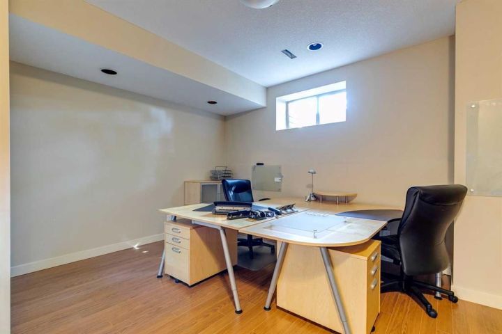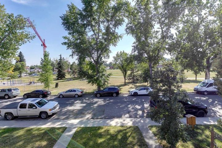 A very special location! Situated on a quiet street with downtown skyline views & facing a large, beautifully treed park with a playground area set up for children. Convenient access to Deerfoot Trail, downtown, transit, shopping & schools. Luxuriously appointed finishes inside this fully developed, two storey with over 2839 sq. ft. of professionally developed living space. Spacious foyer with double closet, combination great room/dining room, with 9’ ceilings & rich solid wood floors. Very open kitchen with extended height cabinetry, a huge island with breakfast bar & a pantry. Cozy family room with gas fireplace, a full wall of built-ins & French door access to a back deck. There is a powder room tucked away 2 steps down from the main floor. Upstairs features 3 large bedrooms including a king size master with walk-in closet & a luxurious 5pc ensuite. There is a 4pc bath conveniently located next to the spacious laundry room on the 2nd floor. The lower level is fully finished & includes a cozy rec room with a built-in bar area, a huge office space & a full bath. The yard is a good size & includes a double detached garage & deck with gas hookup for a BBQ.