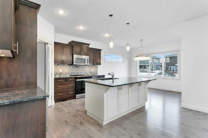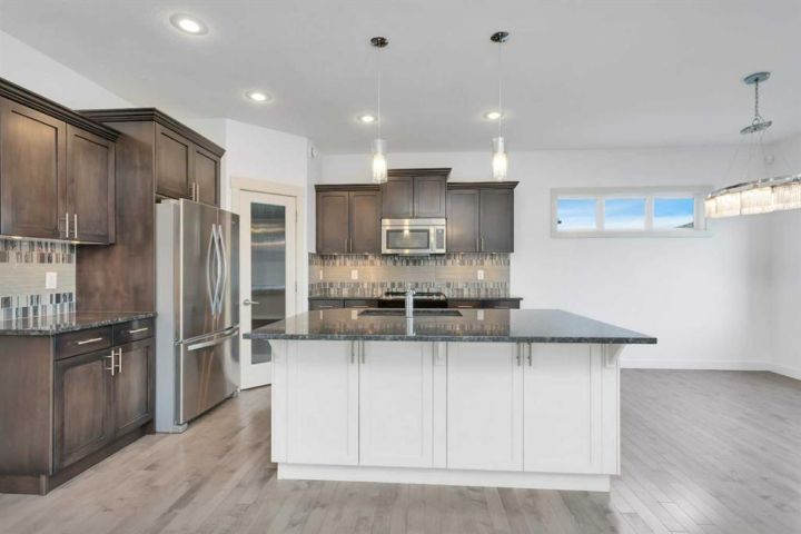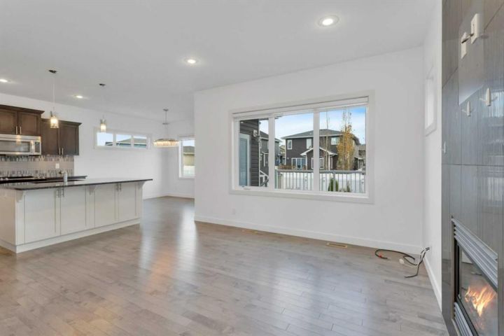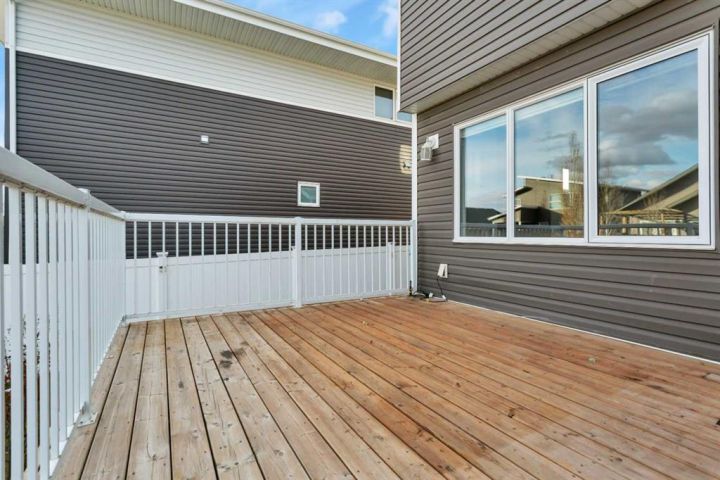 Freshly painted, move-in ready, and waiting for you! This beautiful 4-bedroom, 4-bathroom home in the heart of Laredo checks every box — style, space, comfort, and location. From the moment you walk in, you'll notice how bright and welcoming this home feels. The main floor offers a wide-open layout with 9-foot ceilings, big windows, and a cozy gas fireplace that instantly makes it feel like home. The kitchen is designed for both function and style, featuring granite countertops, rich maple cabinets, under-cabinet lighting, a full tile backsplash, a walk-in pantry, and a large island perfect for casual meals or entertaining friends. Just off the dining area, you’ll find access to the backyard deck — complete with a gas line for your BBQ nights. Tucked away near the garage entrance is a smartly located laundry room and a 2-piece bath, keeping life practical and tidy. Upstairs, there's a spacious bonus room that can flex as a movie space, kids' zone, or cozy reading nook — whatever suits your lifestyle. The primary bedroom is a retreat, with a sparkling chandelier over the soaking tub, double sinks, a separate shower, and a walk-in closet. Two more bedrooms and a full bathroom complete the upper level. Downstairs, the fully finished basement offers even more living space — a large family room, fourth bedroom, and a full bathroom, giving everyone room to spread out. Outside, enjoy a fenced backyard with alley access, a handy storage shed, and space to relax. The heated, insulated, and drywalled garage comes with a floor drain — super convenient for winter. And here's the best part: the entire home has just been professionally painted from top to bottom and is available for immediate possession. All you have to do is move in and enjoy! Located close to parks, trails, and amenities in a family-friendly neighborhood, this one is truly ready for its next chapter — could it be yours?