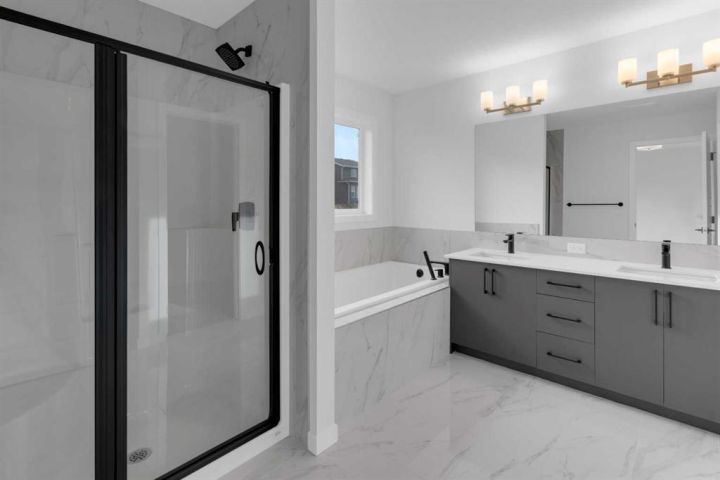 Nestled in the vibrant Northeast community of Livingston. Enjoy the benefits of living in an established neighborhood that brings a plethora of amenities right to your doorstep, along with swift access to major highways. Welcome to the COLLINGWOOD – a BRAND-NEW home built by Excel homes. This amazing family home has it all – it’s LOADED WITH UPGRADES – has a SOUTH EAST FACING BACKYARD and a SEPARATE ENTRANCE TO FULLY DEVELOPED LEGAL BASEMENT SUITE!!! This home offers 2230 sf & is delivered in an open plan, designed for families & entertaining. This impressive home offers FIVE BEDROOMS...FOUR of the bedrooms on the upper level with an ADDITIONAL bedroom and FULL BATH on the main floor. The kitchen is a show stopper with huge waterfall island, built in SS appliances, gas cooktop & loads of cabinets and drawer for storage. In addition, the main floor boasts a pantry with summer / spice kitchen that offers storage, cabinets stove/hood fan and sink! You’ll notice the back of the house is almost entirely windows, flooding this home w/natural daylight. Exit to your SOUTH EAST FACING backyard thru the oversized patio doors to your sunny backyard! The family room & dining area are connected & offer huge family / entertaining potential. 9’ ceilings & gorgeous luxury vinyl plank flooring make this space airy & bright. Upstairs you’ll find FOUR spacious bedrooms! The primary suite is separated from the 3 others by a huge bonus room. The primary suite also features an amazing spa like ensuite w/dual sinks, beautiful tile skirted soaker tub & separate shower. Your laundry room (with folding counter) & family bathroom complete this level. THE BASEMENT is fully developed & has a PRIVATE / SEPARATE side entry that leads to your 2-bedroom LEGAL suite, perfect for rental income, extended family or a live-in nanny! This level offers is built to upstairs standards & featuring TWO BEDROOMS, a FULL KITCHEN (w/SS appliances), FAMILY ROOM, laundry & 4 PCE BATH. All utilities are separate from the main floor – 2 furnaces & hot water tanks & laundry. Whether you're a growing family, savvy investor, or multi-generational household, this is the home you've been waiting for. With over 35 years of experience, over 15,000 homes built & 75 awards for design & industry excellence, Excel Homes is a wise choice!