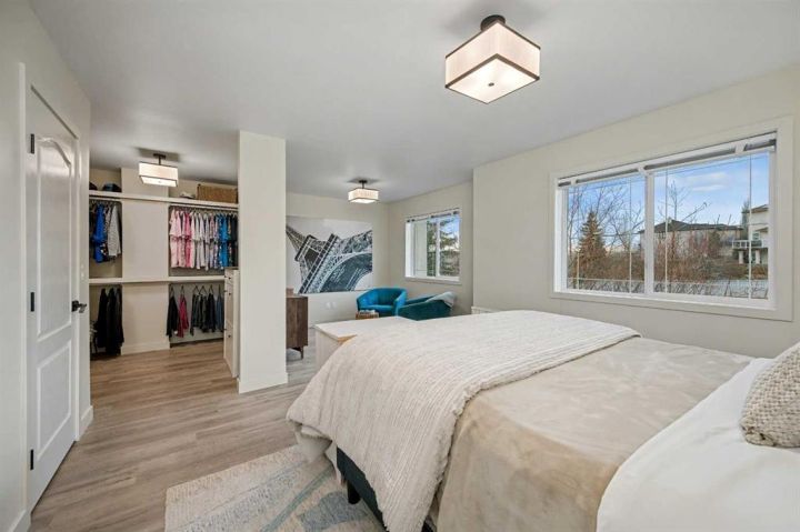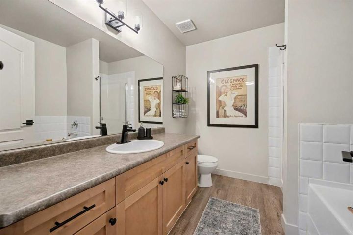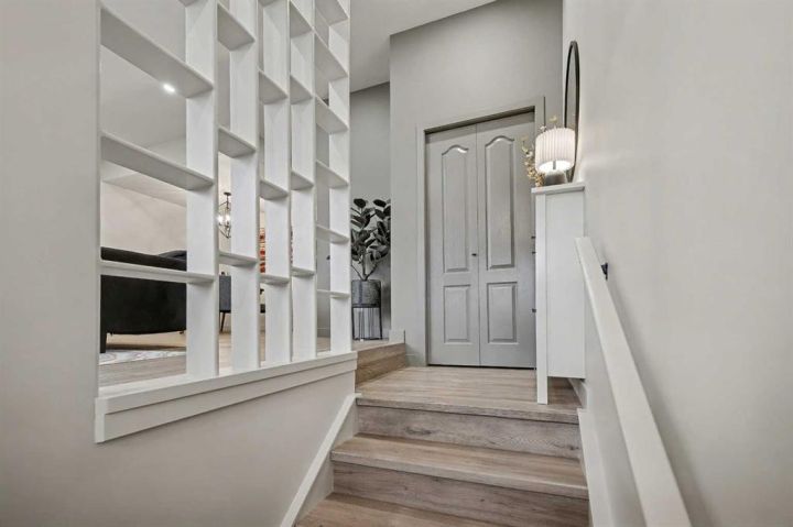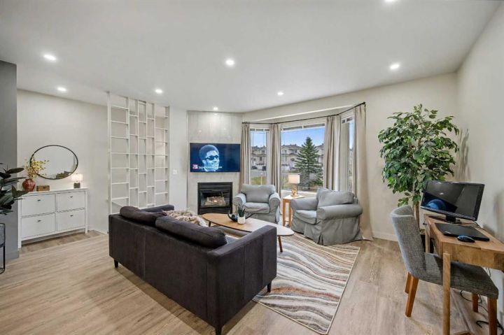 Welcome to The Fairways Vistas, your new home! This recently renovated executive-style townhome offers spacious living paired with stylish comfort and smart design. As you walk in, a mid-century partition opens up to a bright main living area featuring a large bay window that fills the room with natural light and courtyard views. The corner gas fireplace adds warmth and atmosphere, especially during those fall evenings. Next to the living room, a dropped ceiling defines the open dining area, which can also serve as a perfect spot for a home office. Past the main floor powder room is a modern kitchen outfitted with stainless steel appliances, quartz countertops, and elegant oak cabinetry. The practical layout includes generous counter space, a pantry near the range, and an oversized sink with a garburator, making meal prep easy. Hosting is simple with a sizable peninsula that features a built-in microwave, eating bar, and wine fridge. The adjacent breakfast nook is designed for gatherings and gives access to a large rear deck, complete with a gas hookup for barbequing and mature trees for privacy and shade. Upstairs are two large master suites. The primary suite has a walk-through closet leading to a roomy bathroom with a soaker tub, separate shower, and a wide vanity perfect for two sinks if desired. An adjoining flexible space works well as a reading nook, yoga area, or nursery. The second suite overlooks the SE facing courtyard and comes with a walk-through closet with custom wood shelving and upgraded organizers, plus its own full bathroom! The lower level provides a versatile ground-level area accessible from the double garage—ideal for a gym, hobby room, home office or extra storage. It's prepped for a future bathroom if you want to convert it into a lower-level laundry, wine making or mudroom. This home offers more space than most brand new builds and features larger and more private grounds. Premium upgrades including luxury vinyl plank flooring throughout, fresh paint, and updated lighting. Recent updates feature a fiberglass front door, insulated garage door with tinted windows, resurfaced deck and entryway, composite steps with aluminum railing, and improved roofing and gutters. Residents enjoy modern amenities in a mature community, close to golf courses, walking paths, the airport, major traffic routes, and all kinds of shopping. Schedule a visit to discover the comfort and lifestyle this outstanding residence has to offer.