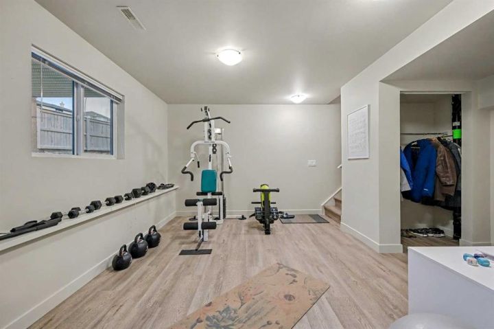 BBQ gas line hose, 2 attached wardrobe storage shelves in garage, lower level cabinets in workshop