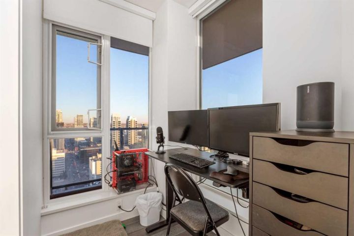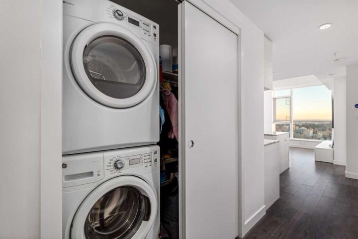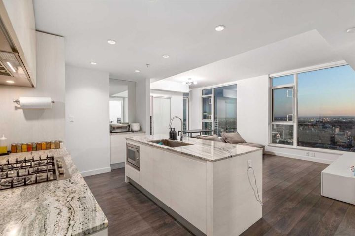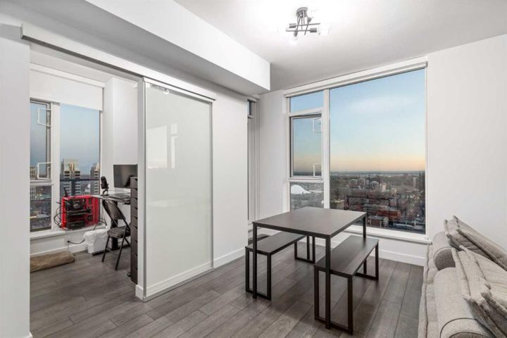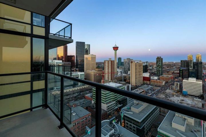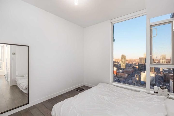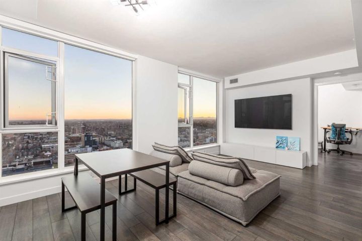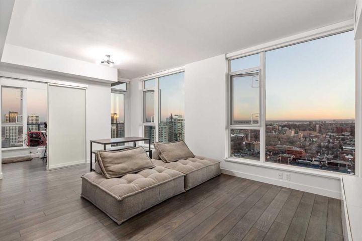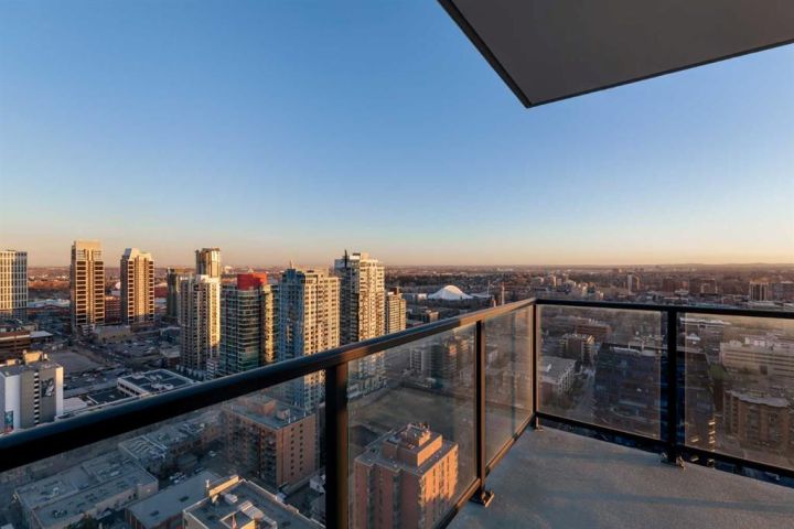 Perched on the 30th floor of the prestigious Park Point building, this stunning corner end unit offers an exceptional blend of luxury, sophistication, and urban convenience in the heart of Calgary’s vibrant Beltline. With soaring 9' ceilings, this thoughtfully designed residence features 2 bedrooms, a versatile office/den, and 2 full bathrooms, creating a perfect balance of style and functionality. Floor-to-ceiling windows flood the space with natural light, showcasing breathtaking panoramic views of downtown Calgary, Central Memorial Park, and the majestic Rocky Mountains. The open-concept design enhances the spacious feel, making it ideal for both relaxing and entertaining. At the heart of the home, the Italian-designed Armony Cucine kitchen is a masterpiece of form and function, featuring full-height cabinetry with soft-close drawers, under-cabinet lighting, premium stainless steel appliances including a gas cooktop, real granite countertops and backsplash, and high-end Hansgrohe fixtures. The expansive island with a breakfast bar provides additional prep space, while a dedicated coffee/beverage station adds a touch of everyday luxury. The living and dining areas offer an inviting ambiance with south-facing views, creating the perfect setting for unwinding or hosting guests. The den/office is surrounded by large windows, provides an inspiring workspace with incredible unobstructed views of the downtown skyline and the Rocky Mountains—a rare feature that elevates both productivity and relaxation. The primary suite is a private retreat, featuring a walk-through closet leading to a spa-inspired 5-piece ensuite with a soaker tub, dual sinks, and an oversized glass-enclosed shower. The second bedroom offers additional comfort with expansive city views and ample storage space, while the 4-piece guest bath includes an oversized shower. Completing the home is a full-size in-suite laundry and air conditioning, ensuring comfort and convenience year-round. This unit comes with underground parking and storage locker for added convenience. The pet-friendly Park Point building offers world-class amenities, including a fully equipped fitness center, Yoga studio, sauna and steam room, resident’s lounge, party room, outdoor courtyard with a BBQ station, and a car/pet wash bay. Ideally located in the heart of the Beltline, Park Point provides unmatched walkability with Central Memorial Park and the Memorial Park Library right across the street, Haultain Park and its tennis courts just steps away, and an array of top-rated restaurants and cafés nearby. The shopping, entertainment, and nightlife of 17th Avenue are minutes away, while the Saddledome and Stampede Park offer year-round events and sports. For those who work downtown, the +15 entrance is just one block away, ensuring seamless connectivity. This meticulously crafted residence delivers the ultimate urban lifestyle with unparalleled views, premium finishes, and top-tier amenities. Don’t miss this opportunity!