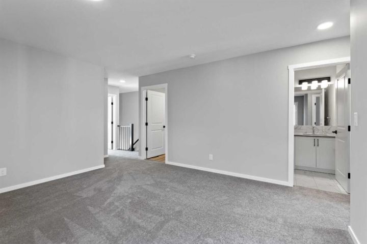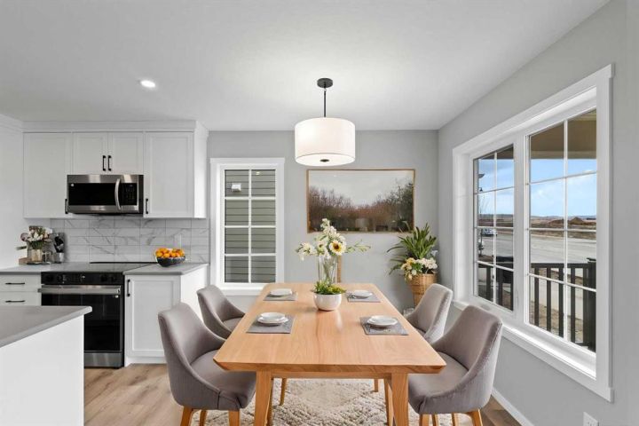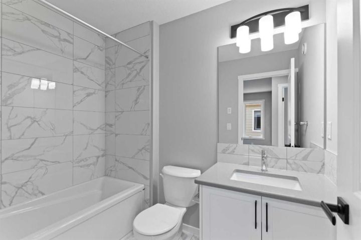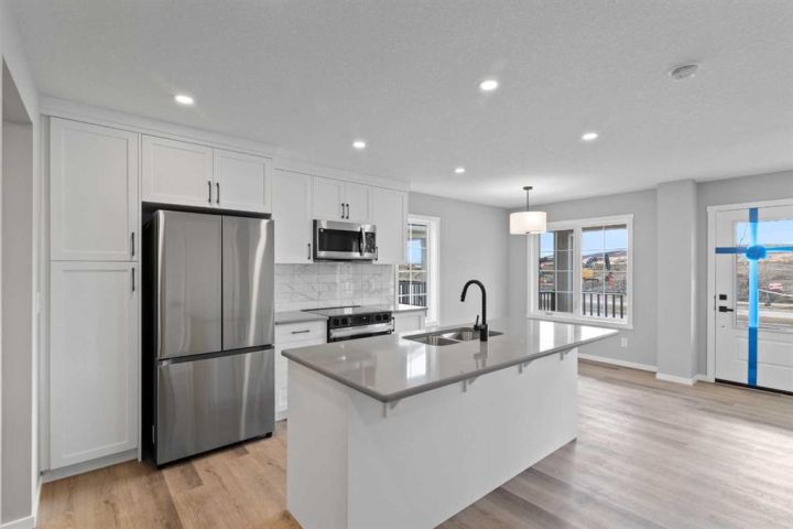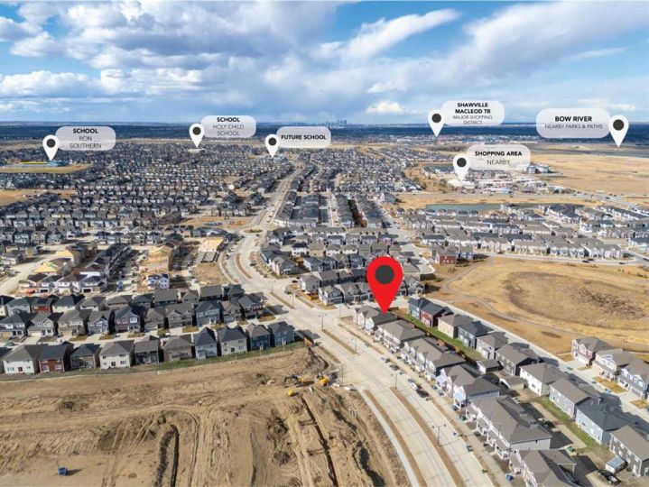 Welcome to this NO CONDO FEE END UNIT TOWNHOME! Impressive curb appeal and a modern design blends with a highly functional layout boasting 3 beds / 3 baths and over 1500 sq ft of finished living area. This home has also been highly upgraded throughout - raised kitchen cabinets with crown molding, upgraded luxury vinyl plank, quartz countertops, tiled bathroom walls, as well as many additional pot light fixtures. Upon entry the open concept is exemplified with an inviting Kitchen/Dining/Living space on the main floor. The kitchen is equipped with stainless steel appliances, full height kitchen cabinets, and loads of counter space and storage! There is also a cozy living room, a large pantry closet, a 2 piece bath and double attached garage. Upstairs, the primary bedroom is bright and spacious and has a private 4 piece ensuite with a large walk- in shower. The bonus room provides more privacy for the primary bedroom from the other 2 bedrooms upstairs. There is also a full laundry room and a 4 piece bath that completes the upstairs. The lower level is bright and has a 3 piece bathroom rough-in that is perfect for a future bathroom. This amazing home is also conveniently located minutes away from the Somerset LRT STATION, large Commercial Centers that include IKEA, T & T Asian Market, the Tsuut'ina Costco, the South Health Campus Hospital and has quick access to highways. This is the perfect home for you. Book your showings today!
