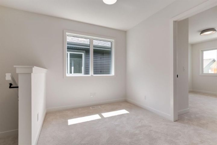 Brand new 'TALO' half duplex floorplan by Rohit Homes, with unmatched design interiors and striking exteriors to create elevated living. Featuring 1500+ sq ft, 3 bed/2.5 bath + Bonus, separate entrance and DOUBLE GARAGE. All Perfectly located In SE Calgary's 'BELVEDERE', close to green space, east hills, easy access to downtown and highways. Step inside to an expansive open floor plan that seamlessly connects living/dining and kitchen. KITCHEN FEATURES: SS appliances, quartz counters, large island (with place for bar stools), designer cabinets, boutique lighting - a perfect place to gather and create masterful meals. Off the kitchen is the dining, mid room and half bath. The TALO plan offers large windows across the back and front, and with the high ceilings as well as open floor plan, it leaves the home feeling bright and inviting. Upstairs, find 3 good size bedrooms, bonus room, laundry, 2 full baths. The primary retreat includes a walk in closet, and spa like retreat full en-suite. Ensuite features: Single vanity, window, bath/shower combo , quartz counters and beautiful tile work. The lot features alley access in the back to a concrete parking pad. Located just outside the ring-road, east of Stoney Trail, offering quick access to highways and other amenities on the southeast side of Calgary. All pictures and 3D tours are of the 'TALO' floorpan that is completed, your unit may have different (colors/finishings/spec upgrades/design interior/elevation) depending on Lot - confirm with builder. At Rohit Homes, we know it’s not just about having a functional floor plan, it’s about having a space that you’re proud to show off. Each of our homes features a distinct look that is inspired by you - our customers. Built by a 4-time Home Builder of the Year with Peace-of-mind 1-2-5-10 year new home warranty. Unparalleled level to living awaits. Note: The listed price includes GST - The First-Time Home Buyers' GST Rebate could save you up to $50,000 on a new home! You must be 18+, a Canadian citizen or permanent resident, and haven't owned or lived in a home you or your spouse/common-law partner owned in the last four years. Terms and conditions are subject to the Government of Canada/CRA rules and guidelines. *Visit show home at 318 sora way SE Calgary mon-thurs 4-7pm, sat/sunday 2-5pm. Self guided tours available outside those times!