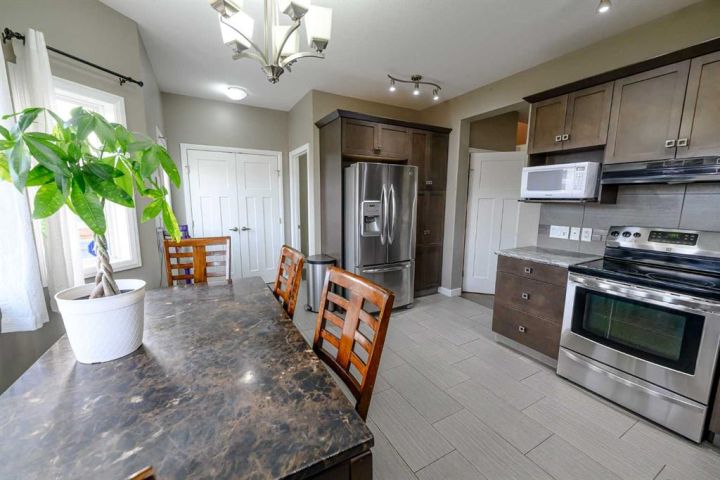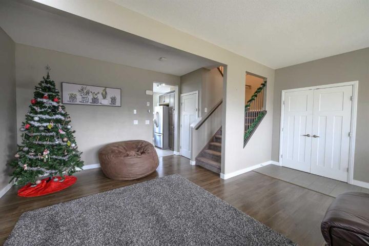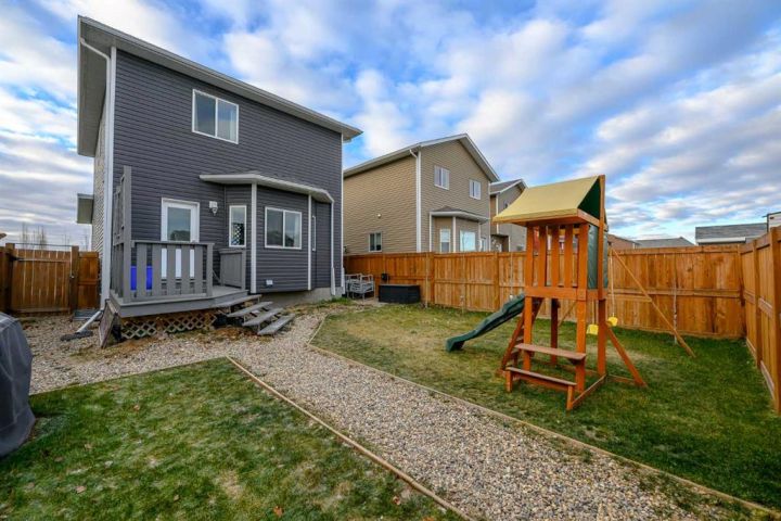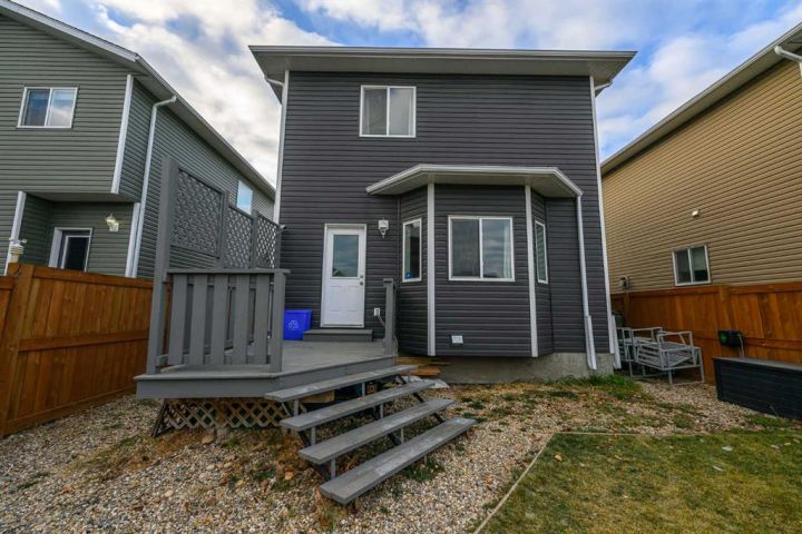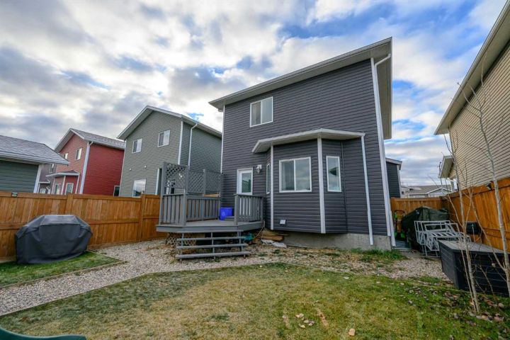 Welcome to this wonderful starter or family home ideally situated in the heart of Cobblestone, just a short walk from the public school, playground, and neighbourhood amenities. From the moment you approach along the welcoming front sidewalk, this property offers a warm, inviting feel. Inside, the main level features a bright and functional floorplan perfect for everyday living. The cozy family room is highlighted by a gas fireplace, creating a comfortable space to relax and unwind. The spacious kitchen offers ample cabinetry, great counter space, and direct access to the backyard through the dining area—ideal for outdoor dining or watching kids play. A convenient half bath completes the main floor. Upstairs, the generous primary bedroom provides a peaceful retreat with a walk-in closet and a well-appointed 4-piece ensuite. Two additional bedrooms are both nicely sized, making them perfect for children, guests, or a home office. A second full bathroom serves this upper level. The basement remains undeveloped, offering a clean slate for future customization—whether you envision an additional living area, bedroom, gym, or storage. Outside, the backyard is partially landscaped and fenced, with rear alley access providing handy off-street parking and potential for future garage development. This well-kept home is move-in ready and awaiting its next owners. Book your showing today and discover the value and comfort this Cobblestone property has to offer!