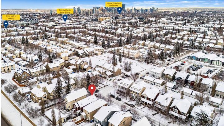 Discover this beautifully maintained 2-storey, 4-bedroom home on a quiet, tree-lined street, offering over 2,700 sq. ft. of living space. Built in 2004 by Homes by Avi, this property stands out with its charming west-facing backyard, classic full-width front veranda, stone and James Hardie exterior, and thoughtfully landscaped trees and flower beds. Step inside to soaring 9' ceilings, elegant hardwood floors, and a flexible main-floor layout that adapts to your lifestyle. The front room can serve as a home office, formal dining space, or relaxed sitting area. Just beyond the spacious powder room, the stylish kitchen features stainless steel appliances, quartz countertops, pantry cabinetry, and designer lighting over the raised breakfast bar — a perfect hub for hosting and gathering. A separate laundry area with additional pantry storage sits just off the kitchen. The rear living room is bright and inviting, with large windows overlooking the backyard and a striking gas fireplace. Use it as a cozy family room or an elegant dining space — the versatility is yours. The back entry includes a generous closet and access to the double detached garage, plus a large ground-level patio area with gas line for barbecuing and a deep, grassy yard ideal for kids and pets. Upstairs, the primary suite is a true retreat with space for king-sized furniture, a walk-in closet, and a luxurious ensuite complete with a deep soaker tub, separate shower, and private water closet. Two additional bedrooms are bright, well-sized, and located next to a 4-piece bathroom. The fully finished basement expands your living space with a rec room perfect for movies, games, or a home gym, along with a 4th bedroom, full bathroom, and three substantial storage areas. Perfectly positioned for lifestyle and convenience, this home is walking distance to top-rated schools — Lycée Louis-Pasteur and Masters Academy — plus all the trendy shops, cafés, and award-winning restaurants of Marda Loop. A tranquil pathway leads directly to Safeway and Starbucks, emphasizing the highly walkable, pedestrian-friendly nature of this exceptional neighbourhood. Additional features include central A/C and a new hot water tank (2022). Available for quick possession.