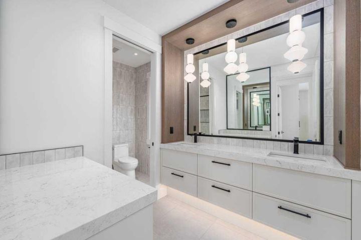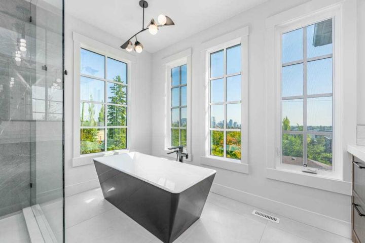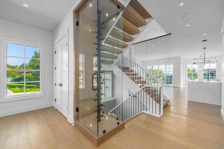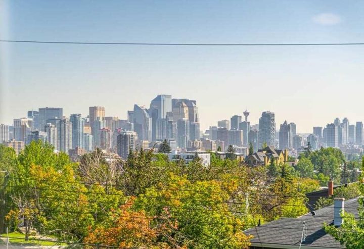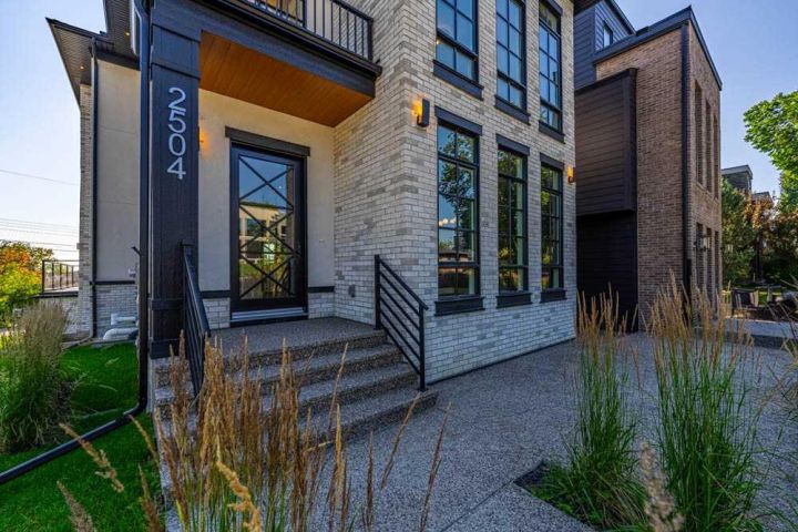 Exquisite Modern Corner Home with Panoramic Downtown Views. This striking luxury contemporary corner home, is perfectly positioned in one of Calgary’s most sought after inner city neighbourhoods. From the moment you arrive, the home’s bold architecture, oversized windows, and meticulously landscaped, low maintenance yard with automatic irrigation, make a lasting impression. Step inside to soaring ceilings and sun drenched spaces that immediately evoke a sense of openness. The formal dining area, surrounded by windows, is ideal for entertaining, while a discreet powder room and custom wine storage add subtle touches of luxury. At the heart of the home, the chef’s kitchen impresses with premium Fisher & Paykel appliances, elegant quartz countertops, statement tile, and a butler’s pantry to keep everything organized. The oversized island is perfect for cooking, gathering, or casual dining, and the cozy breakfast nook opens onto a private terrace, seamlessly connecting indoor and outdoor living. The family room is anchored by a dramatic floor to ceiling stone fireplace and provides direct access to the terrace with sweeping downtown views, perfect for relaxing evenings or weekend entertaining. A striking glass enclosed staircase adds architectural drama while allowing natural light to flow throughout the home. Upstairs, the luxurious primary suite serves as a private retreat. It features dual custom closets, a built-in vanity, and a spa inspired ensuite with heated floors, a deep soaker tub with downtown views, double sinks, a rainfall steam shower, and high-end finishes. Two additional bedrooms offer flexible space for children, guests, or home offices, with a full bathroom that also includes in-floor heating and ample storage. The upstairs laundry room, equipped with high-end washer and dryer and abundant cabinetry, makes daily tasks effortless. The fully developed lower level expands your living space with a spacious recreation room, custom wet bar with wine fridge and integrated dishwasher, perfect for entertaining. Radiant in-floor heat ensures comfort year round. A fourth bedroom and full bathroom provide additional space for guests or teens, while an oversized mudroom with smart storage connects directly to the heated double garage. Additional features include central AC, integrated lighting, and high-end Hunter Douglas remote operated blinds throughout, fully programmable via app for complete convenience and privacy control. This home blends luxury, style, and practical functionality, with a location that puts the best of Calgary’s inner city right at your doorstep. Don’t miss this rare opportunity to own a home that elevates both everyday living and entertaining. Please see 3D tour and video.