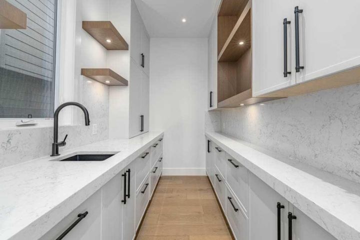 Built-In Coffee Maker, Butler Pantry Built In Beverage Fridge & Drawer Dishwasher, Basement Drawer Dishwasher
