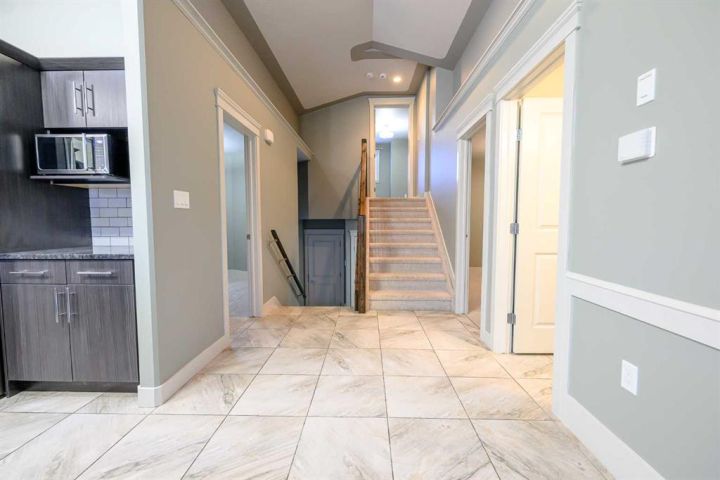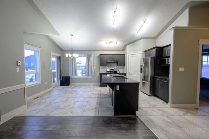 Welcome to this move-in ready modified bi-level in the sought-after Westgate area of Grande Prairie. With fresh paint throughout, central air conditioning, a heated garage, and immediate possession available, this home checks all the boxes. This family-friendly home features 3 spacious bedrooms and 2 full bathrooms, including a private primary suite with a walk-in closet and a 4-piece ensuite offering a soaker tub and dual-sink vanity. The open-concept main living space boasts vaulted ceilings, a cozy gas fireplace, and a well-appointed kitchen complete with quartz countertops, ample cabinetry, a pantry, and a large island perfect for entertaining. Quartz countertops continue throughout all bathrooms, creating a cohesive and modern finish. The large undeveloped basement offers endless potential for future development and customization. Outside, enjoy a fully fenced yard with a deck—ideal for kids, pets, and summer entertaining. Located close to schools, parks, walking trails, shopping, hospital, restaurants, and all of Westgate’s west-end amenities, this home is an excellent opportunity for families or investors alike.