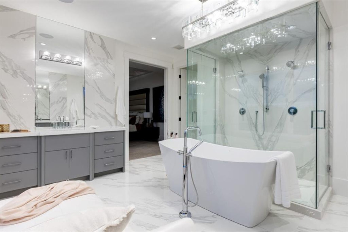 Beauty, Elegance, Privacy & Show home Status!!! Luxury exudes in every corner of this incredible fully developed 2 story located in Exclusive Bearspaw! The moment you enter this Elegant custom built 2 story you will feel at home! This award winning plan Custom Built by McKinley Master Builders has only had one owner. The Vale was specifically recognized for the exquisite staircase with custom made iron railing! You will notice the amazing views of the rolling hills and treed areas from all rooms in this stunning home. Privacy and tranquility at its finest! Open concept of the main floor flows from one grand area to the next! Each room offering its own unique design and decore! The grand foyer graces you with a custom wardrobe and the exquisite Staircase which is sure to stop any guest in their tracks! The Great room features a marble feature wall with BI gas fireplace & TV area. You will notice the views this home offers from the comfort of this room. The kitchen is befitting of any Chef and has a blend of traditional and modern finishes with top of the line Wolf and Subzero appliances! The butler's pantry is conveniently located off the kitchen and features a BI Wolf Steam oven. The formal dining will set the mood for entertaining your most precious guests or hosting that large family dinner. The oversized marble island complete with waterfall edge will comfortably seat the kids for morning breakfast or a late night snack! There is a second island station that divides the great room and kitchen area's slightly. Nicely defining each space. The custom herringbone wood floors are a show stopper and yet offer the practicality any family needs. The powder room has so much warmth and class from the custom floating vanity to the custom wood walls. The upstairs level features 4 rooms, one of which can be utilized as an office space / guest room as it has a BI murphy bed. There is a full guest bathroom off this guest suite. There is an oversized main bath with a double floating vanity with custom built-ins, a private toilet room and a private custom shower area. This bathroom will wow you! The hallway features accent lighting and custom iron chandeliers with a barrel ceiling. This leads you into an oversized laundry room with an abundance of cabinets. The floors are heated through out the laundry room, walk-in closet and the spa like ensuite! As you enter the master retreat you will immediately notice the privacy at the rear of the home and the floor to ceiling windows with a cozy sitting area. The ceiling detail is grand and very detailed. Entering the master ensuite you will feel the stress of your day melt away! The basement features a custom bar area with BI keg fridge and subzero fridge . The Walk Out basement is bright and cheerful! The mechanical room is a masterpiece itself and connects to a private stairwell that leads you into the garage. Garage features epoxy coated flooring and custom built in cabinets. Seller is a Licensed Realtor in Province of Alberta